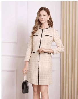 مقاس كبير ملابس نسائية للخريف والشتاء خيوط لوريكس مطرزة بالخرز مزيج من الصوف بأكمام طويلة حفلة Vestidos 3XL