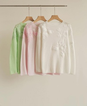 بيع بالجملة سترات جديدة-بلوفرات خريف وشتاء-بلوفرات صوف عالي الجودة للنساء من الكشميرات المطرزة باللون الوردي والأخضر والأبيض