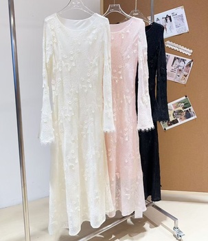 فستان طويل من الدانتيل بمقاسات كبيرة لربيع 2025، فستان نسائي للحفلات الراقصة بنقشات زهور من الدانتيل بالكامل وأزرار وأكمام واسعة، فستان ماكسي من البوتيك