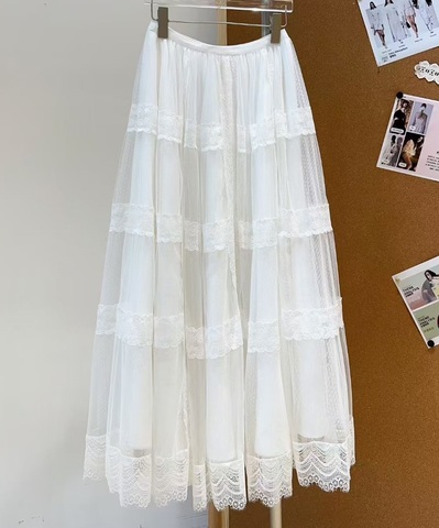 ثوب حفلة طويل تنورة طويلة الخريف الشتاء أزياء المرأة مثير شبكة تول الدانتيل خليط أنيقة طويلة أسود تنورات بيضاء