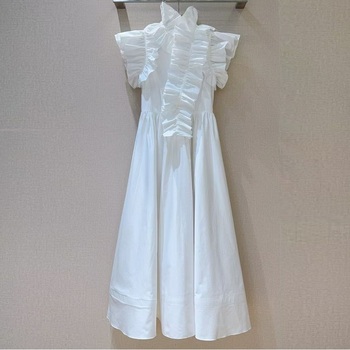 فستان طويل جديد عالي الجودة لربيع 2026، فستان ماكسي نسائي سادة باللونين الأبيض والأسود بأكمام قصيرة وتزيين من الزهور والكشكشة القابلة للإزالة مناسب للسهرات مقاس XL
