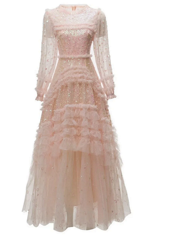 فستان سهرة طويل مقاس XXXXL لربيع وصيف 2024، فستان نسائي للمناسبات الخاصة بتطريزات وزخارف كاملة، فستان حفلات مثير من التول الشبكي