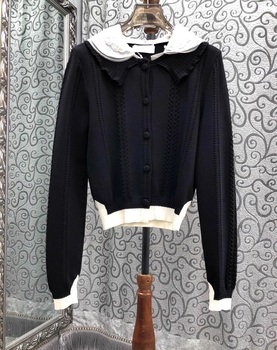 أحدث صيحات الموضة كنزات صوفية للشتاء والخريف بياقة مطرزة بالخرز سيدة سوداء