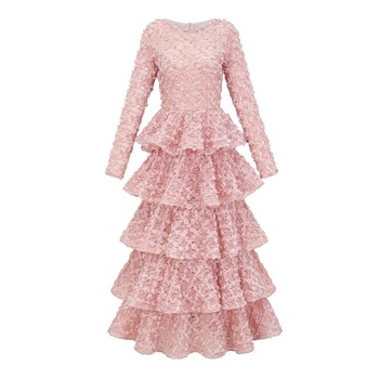 فستان طويل من الدانتيل XXL-فستان لحفلات الزفاف والخريف والشتاء للسيدات من الدانتيل بنمط زهور بأكمام طويلة فستان مشمش أسود وردي