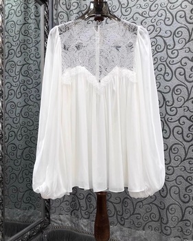 أعلى جودة بلوزة جديدة قميص خريف شتاء النساء نمط الدانتيل التطريز خليط أسود قمم بلوزة أنثى