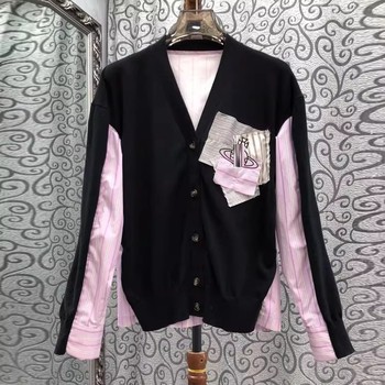 بيع بالجملة موضة جديدة كارديجان خريف وشتاء تريك ملابس نسائية رقبة V مخطط طباعة مرقعة طويلة الأكمام قمم كارديجان سوداء