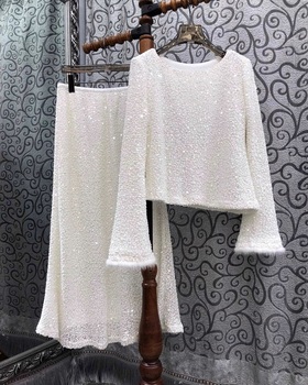 مجموعة ملابس نسائية جديدة عالية الجودة-بدلة تنورة للخريف والشتاء-سترة نسائية مطرزة بالحياكة + خصر مرتفع-مجموعات بدلة تنورة طويلة